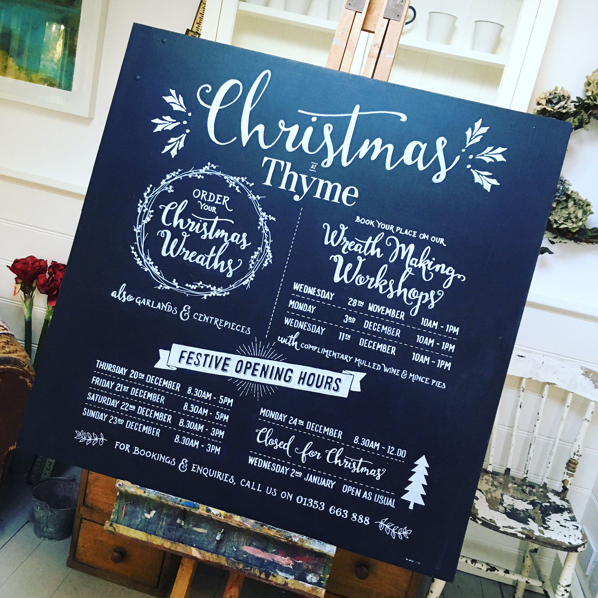 Examples of hand lettering for chalkboards, shop signage and concert venues